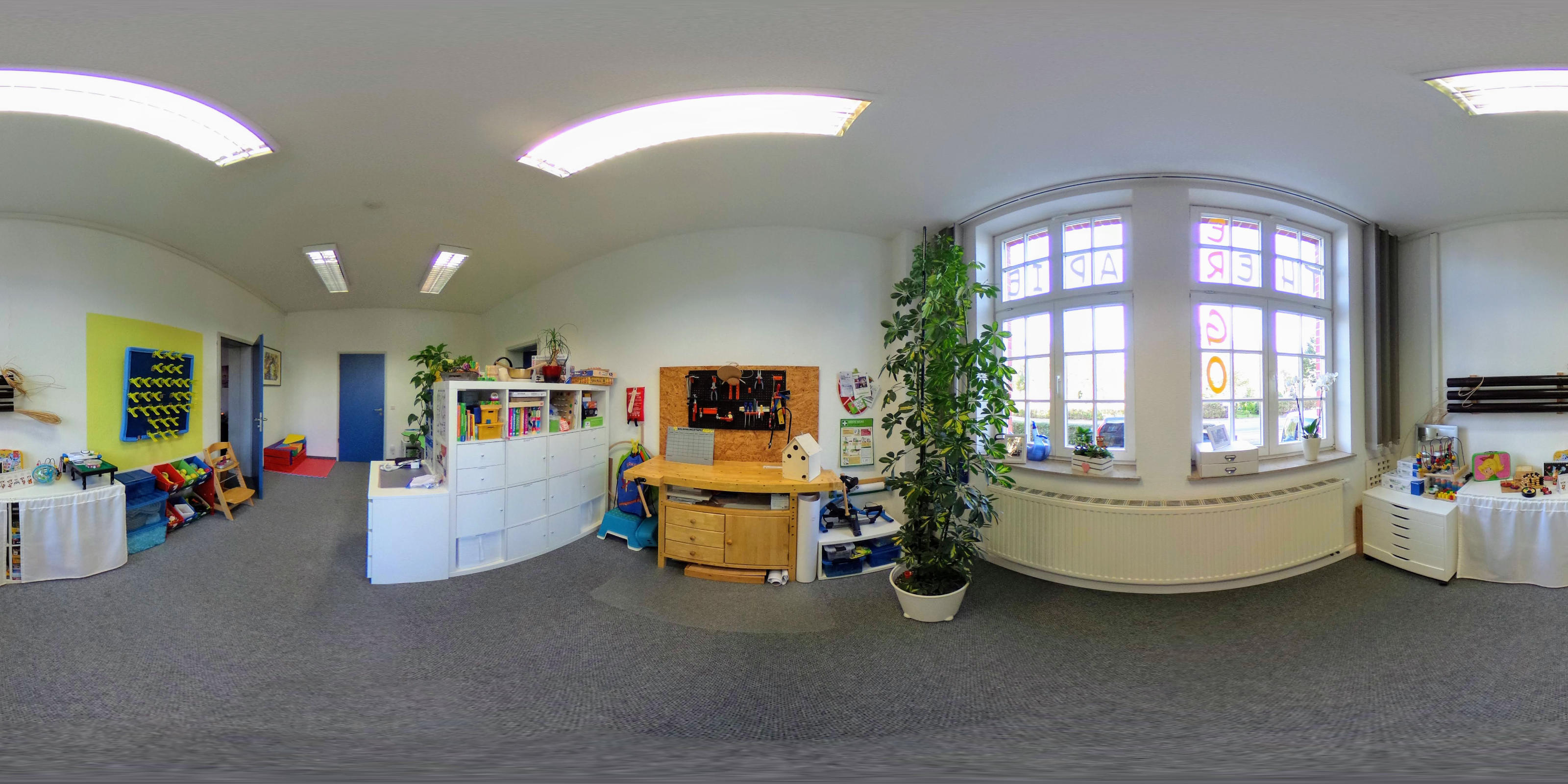 FachbereicheVerschiedene Fachbereiche der Ergotherapie decken wir mit unserem Team ab. Gern beraten wir Sie bei Fragen dazu.(360° Panorama – Behandlungsraum der Ergotherapie Mäder)